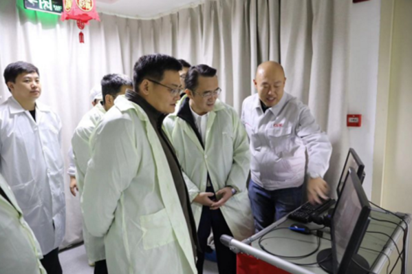 1月24日,北京市藥監局戰略物資儲備處張松副處長到中國電科了解緊急生產情況